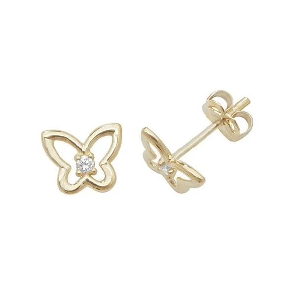 9ct Yellow Gold Butterfly Single CZ Stud Earrings