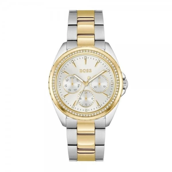 Women’s Atea, stainless steel case, silver white dial with index, two-tone stainless steel link bracelet, Quartz multifunction movement