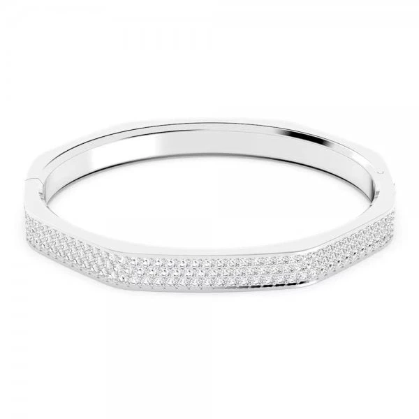 Dextera Bangle, Octagon, Pavé, White, Rhodium