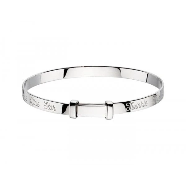 Twinkle Twinkle Little StarThe Twinkle Diamond Baby Bangle sparkling diamond baby bangle is a perfect gift for newborns and christenings. Suitable for boys and girls and can be engraved inside. Therefore make the perfect personalised gift and enjoy Free Little Star Jewellery Gift Wrapping and Free UK Delivery.