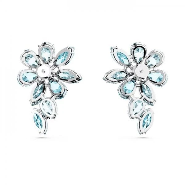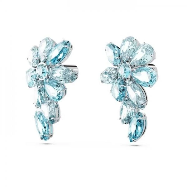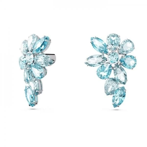 Inject the beauty of nature into any style with these Gema pierced earrings that bloom with savoir-faire. A mix of blue crystals are organically, yet precisely, arranged on a refined rhodium plated setting, allowing each hue to shine bright. Combine with a blue necklace from the Gema family, or wear alone for effortless glamour after dark.