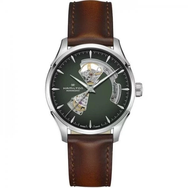 A vibrant smoked dial draws the eye inward to the precision cutouts of the Jazzmaster Open Heart. Offering a captivating glimpse at the movement underneath, its contemporary style is both unique and versatile.