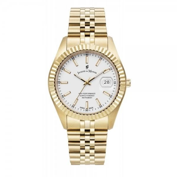 40mm dial & adjustable silver strap Swiss quartz movement Built in date display 50 metre water resistant Official 2 Year Jacques Du Manoir warranty