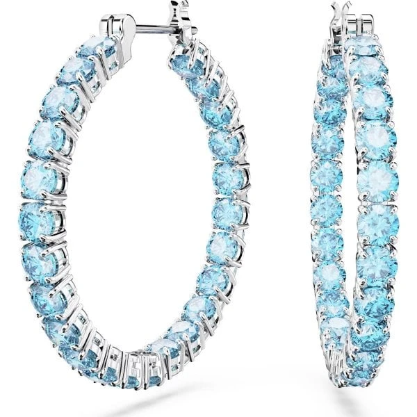 Simple, yet paved with exquisite colour, these Matrix hoop earrings are an essential addition to your jewellery collection. The perfect circle of round blue stones is set in rhodium plating for a fine combination of cool tones. Match these earrings with other pieces in the Matrix family for a harmonious look.