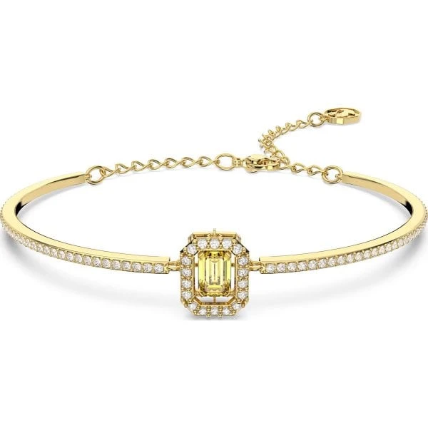 This Millenia bangle captures Daniel Swarovski’s desire to make the style of fine jewellery accessible to everyone. It features a yellow octagon-cut stone framed with shimmering pavé crystals set on a gold-tone plated band with a lobster clasp fastening. Wear yours solo or stacked to elevate everyday looks.
