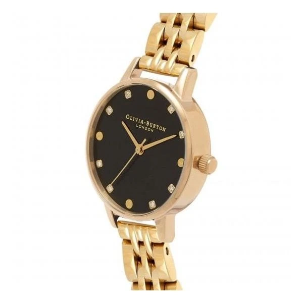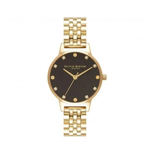 The Classics Collection from Olivia Burton features watches made to become a staple in any collection. The Olivia Burton Classics Womens Watch OB16SE17 has a sleek black dial embellished with Swarovski crystal markers held by a 30mm yellow gold ion-plated