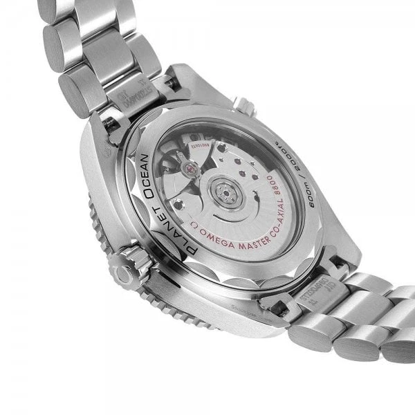 The OMEGA Seamaster Planet Ocean 600M Master Chronometer is water resistant to 600 metres / 2000 feet / 60 bar, and has a helium-escape valve. The OMEGA Master Chronometer calibre 8900 at the heart of this timepiece can be seen through the transparent caseback. To achieve Master Chronometer status, it has passed the 8 rigorous tests set by METAS (The Swiss Federal Institute of Metrology).