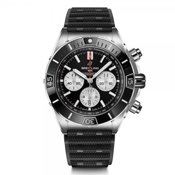 Breitlings supercharged watch for your every pursuit. The Super Chronomat is inspired by the original 1980s Chronomat that Breitling created for the hotshots of aerobatic squadrons. The boldest of all Chronomat watches, the Super Chronomat features several ceramic inserts on the bezel, on the chronograph pushers and on the crown as well as a Rouleaux-inspired rubber strap. Still, this all-purpose sports watch wont get in the way of your sense of style. The Super Chronomat comes in several colour and metal variations, from stainless steel to 18 k red gold. It either features the iconic Rouleaux bracelet or a rubber Rouleaux-inspired strap, matched with a folding clasp. The Super Chronomat B01 44 is powered by the Breitling Manufacture Calibre 01, a COSC-certified chronometer.
