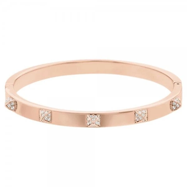 Ideal for fashion lovers! This rose gold PVD bangle honors the thin bangle and spike trends. Embellished with clear crystal pavé, its sleek and modern silhouette combines well with other bangles or bracelets to create an on-trend stacked look. Article no.