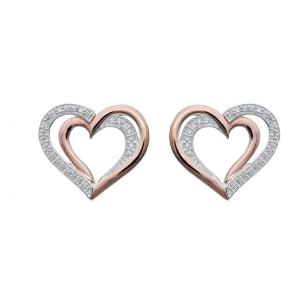 Unique Silver Stud Earrings W/ Rose Gold & CZ